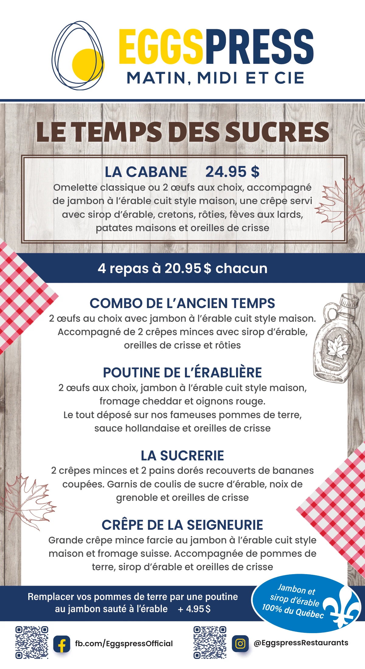 Depuis son lancement en affaires en 2005, le tout premier restaurant Eggspress sur le Boulevard Saint-Martin à Laval a su multiplier ses emplacements. En effet, entre Ottawa et Trois-Rivières, vous trouverez 12 restaurants Eggspress prêts à vous servir, et ce tôt chaque matin.